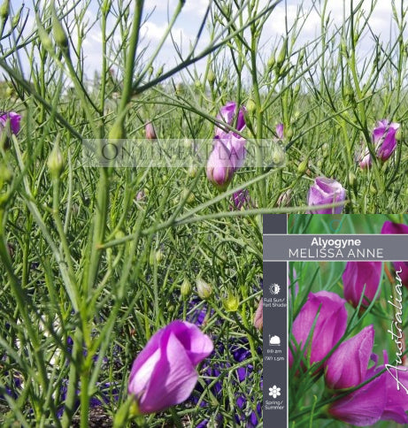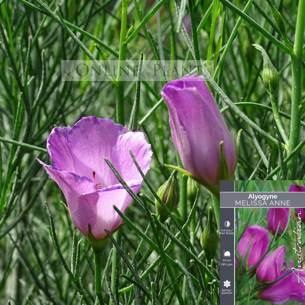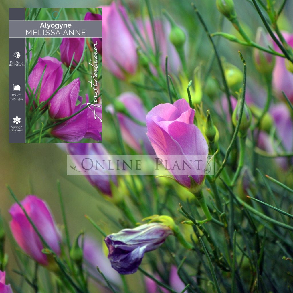 Alyogynne Melissa Anne Hibiscus is available from Online Plants,Australia's leading e-commerce plant nursery. Located in Melbourne we offer fast, accurate and careful plant delivery to all Melbourne, Sydney, Adelaide, Canberra and Brisbane, metropolitan and regional areas.