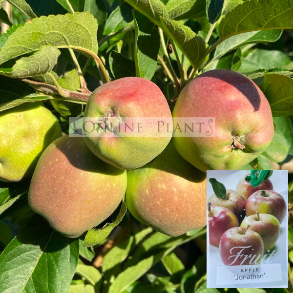 At maturity, Jonathan forms a small to medium deciduous tree approximately 3–4 metres high and 3 metres wide, depending on rootstock and pruning. It suits backyard orchards, espalier, or open lawn plantings. The spring blossom is soft pink to white, providing ornamental value before fruit set.